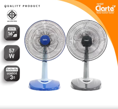[สินค้าขายดี]์Clarte’ พัดลมตั้งโต๊ะ3ใบพัดใส12″ รุ่นCTJ-120/GYและขนาด16นิ้วมีให้เลือก2สีรุ่นมอเตอร์ทองแดงทนความร้อนได้ดี