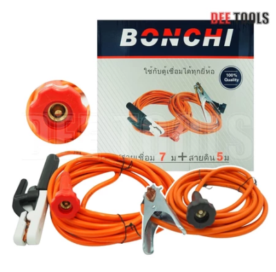 รายละเอียดสินค้า BONCHI สายเชื่อม 7 เมตร สายดิน 5 เมตร ชุดสายเชื่อม สายดินสำเร็จรูป เข้าหัวพร้อมใช้งาน ใช้ได้กับ ตู้เชื่อม ตู้เชื่อมไฟฟ้า เครื่องเชื่อม